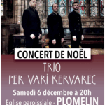 Cette fois, ça se passe à l'église de Plomelin et ce n'est pas nous qui organisons mais une association amie qui accueille le trio Per Vari Kervarec le 6 décembre à 20 h.Il n'y a que 300 places dans l'église, il est donc prudent de réserver pour être certain.e d'en… Lire la suite
